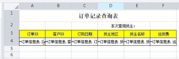E3单元格表达式为:=订单信息表.货主名称