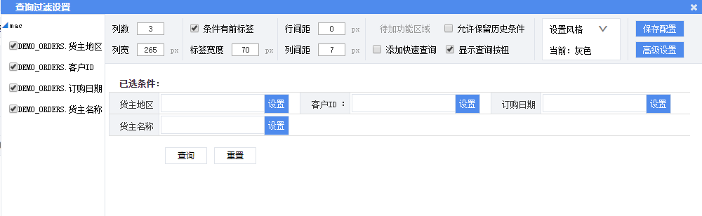 获取条件宏查询条件的函数conditionMacro("DEMO_ORDERS.货主名称")