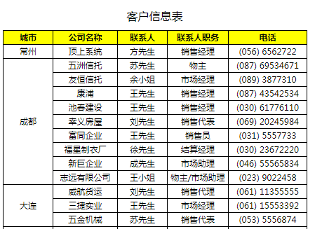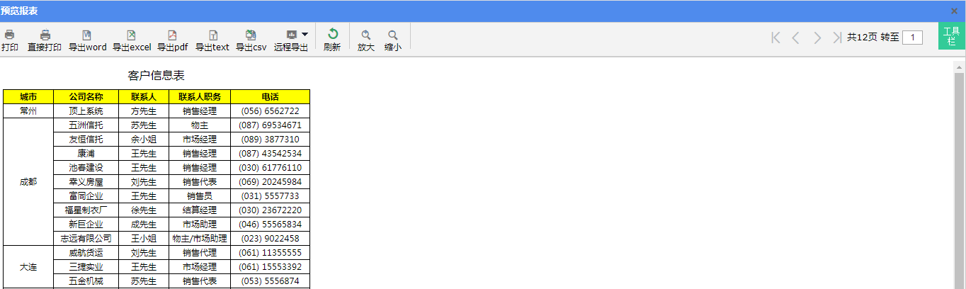 • 每个城市分组后面列表显示该组中的客户公司名称、联系人等信息。