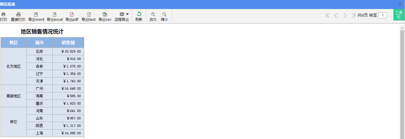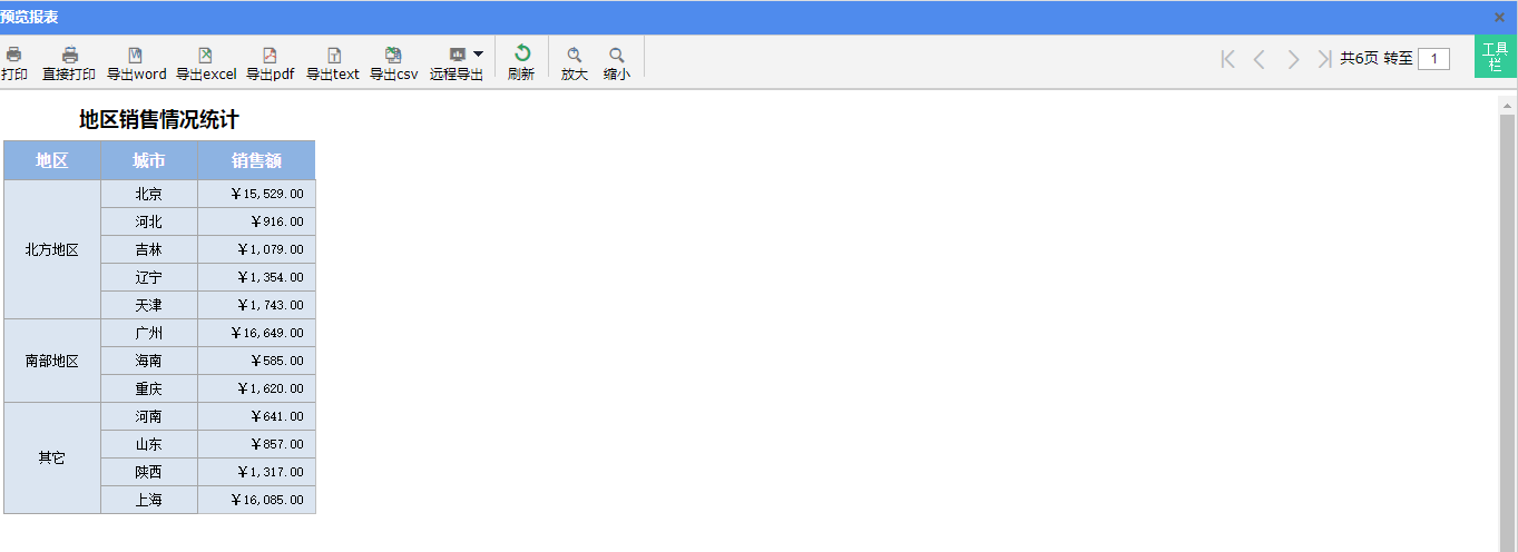 A3:=demo_sales.enumGroup(false,地区=='东北' or 地区=='华北',"北方地区",地区=='西南' or 地区=='华南',"南部地区","其它")