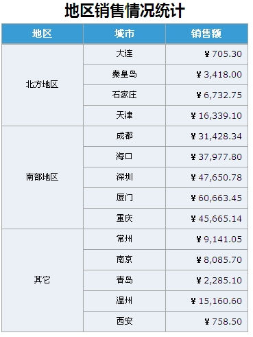 - 人为的把“东北”组和“华北”组合并成了一组,组名改成“北方地区”;把“华南”组和“西南”组合并成一组,组名改成“南部地区”;把“华东”组和“西北”组合并成了一组,组名改为“其它”。