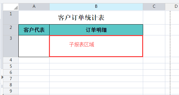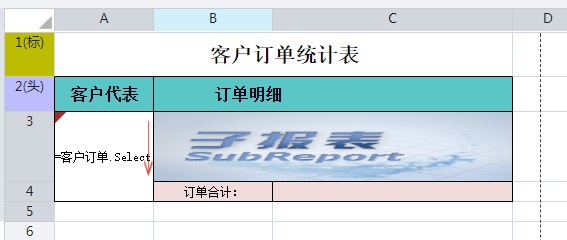 在B3单元格重新插入子报表“订单明细表2”。
