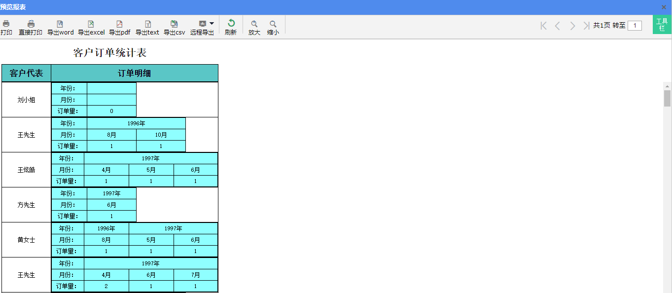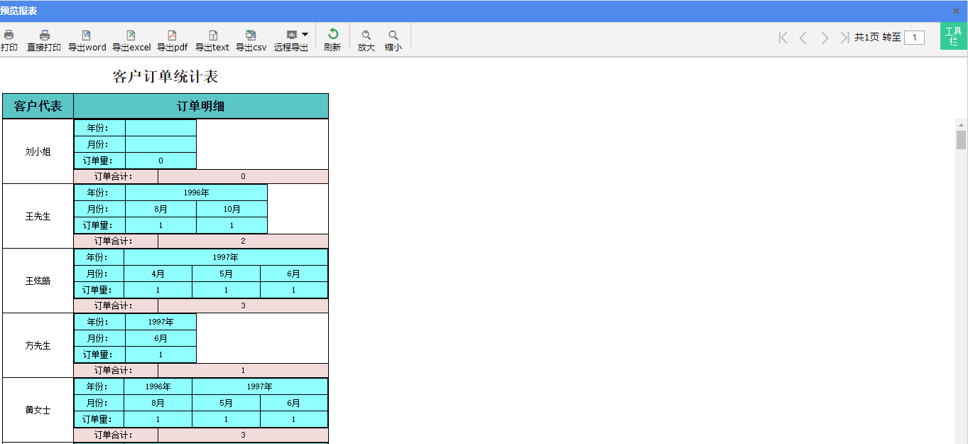 点击【预览】按钮,保存并预览报表。预览截图如下图: