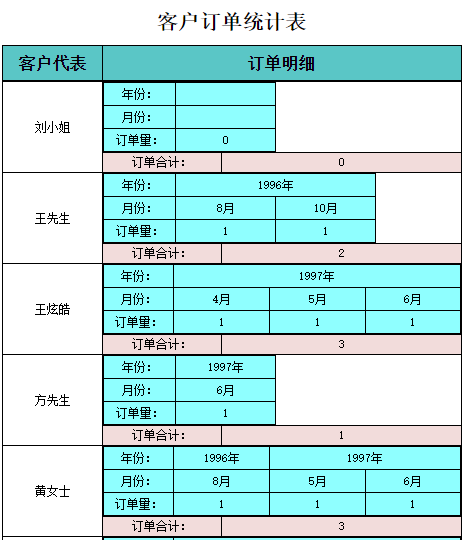 制作如下图所示的“客户订单统计表2”。