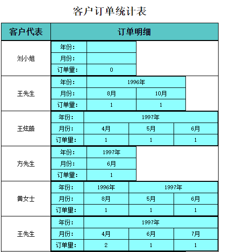 制作主报表“客户订单统计表”,嵌入子报表“订单明细”。
