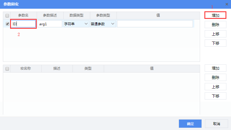 打开【编辑】菜单栏里的【参数和宏】页面,添加名为“ID”的参数,如下图: