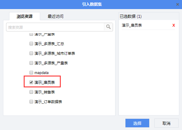 设置A2单元格表达式为:=演示_雇员表.select(雇员ID,false)