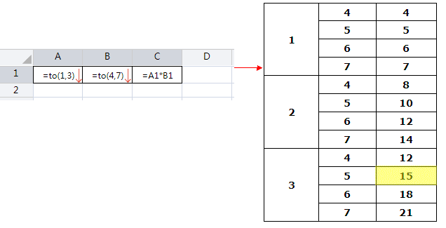例1:下图的报表中,C1[A1:1,B1:2]的返回值为5;C1[A1:2,B1:3]的返回值为12;C1[A1:3,B1:4]的返回值为21;B1[A1:2,B1:2]的返回值为5,B1[A1:3,B1:4]的返回值为7。