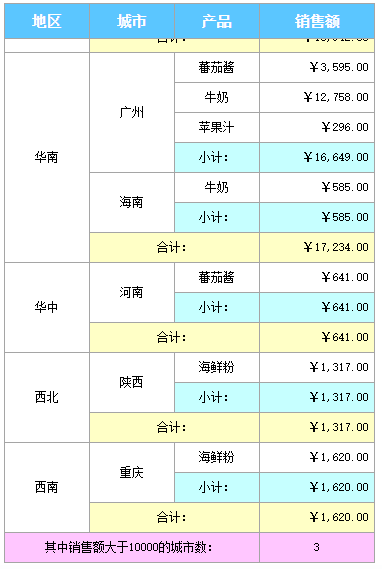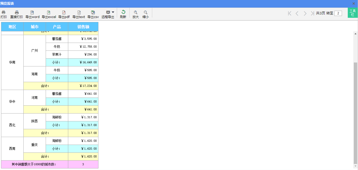 将上一节的“分组汇总报表”另存为“条件汇总报表”,打开“条件汇总报表”。