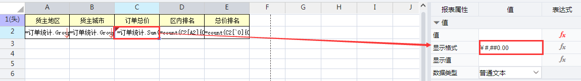 C2:=订单统计.Sum(单价*数量)