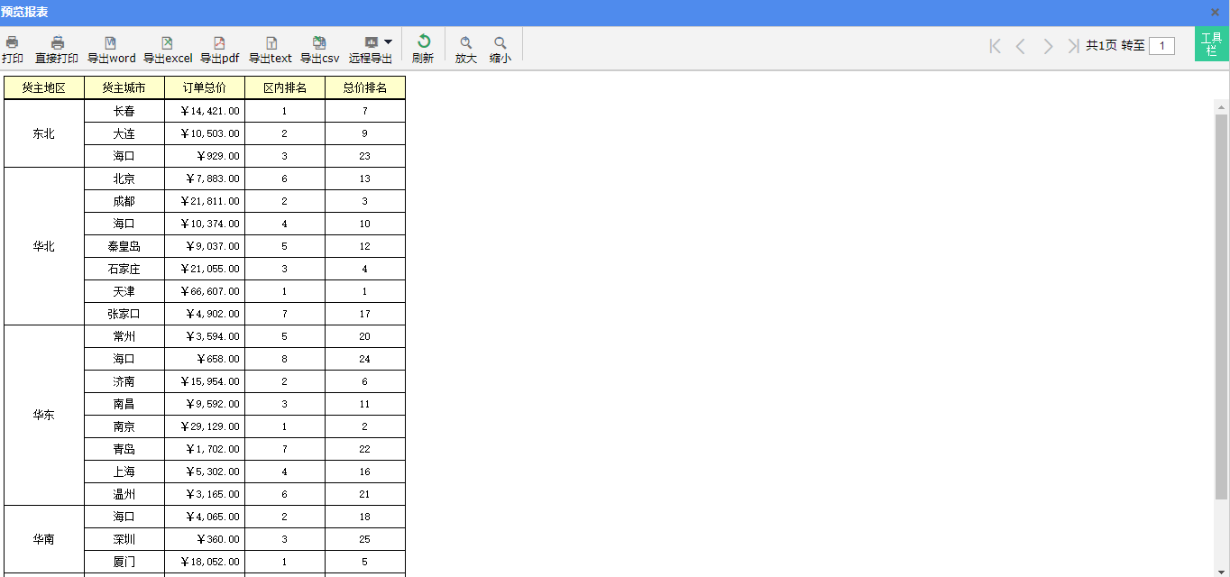 分组后重新排名即组内排名,就是对每一组的元素进行排名。如下图中可以看出东北,华北等地区的排名是在各自所在组内排名,两者的排名是不连续的。