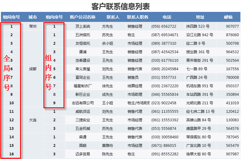 对于分组显示的报表,两种设置的效果是不同的,即组内序号和组间序号。