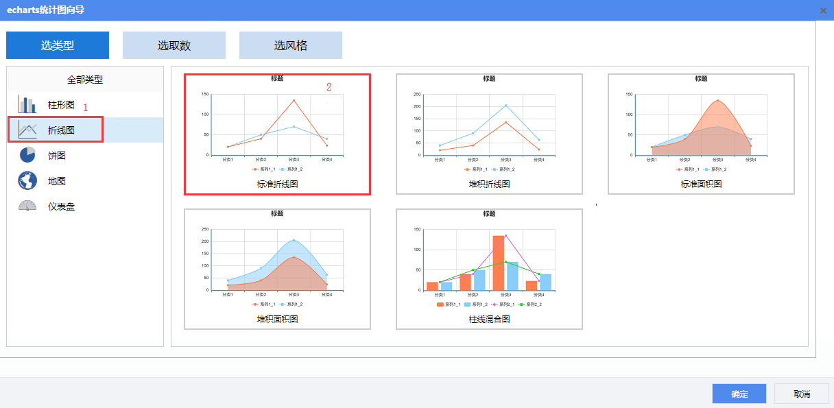 在左侧选择“折线图”,然后右侧选择“柱形图”里的“标准折线图”。