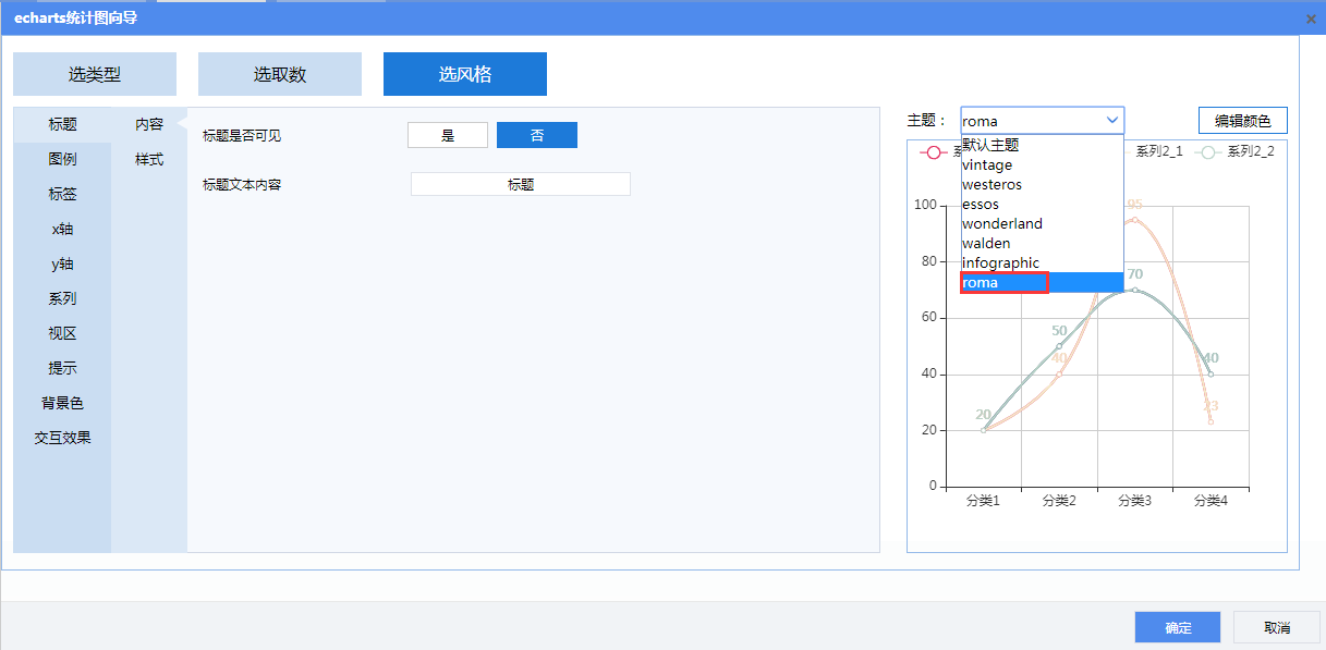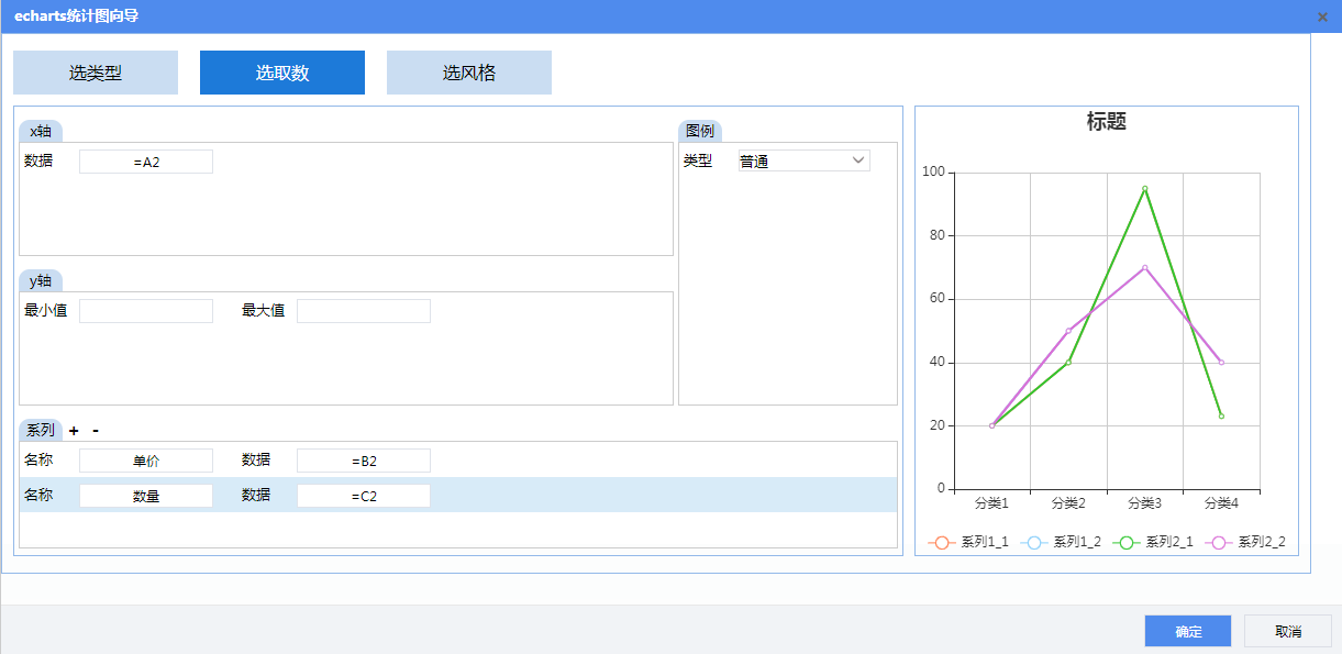 选中合并格,点击【插入】--【Echarts统计图】,打开统计图设置页面。