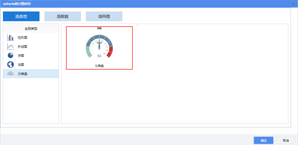 仪表盘不存在x、y轴,所以无需设置x轴、y轴数据。