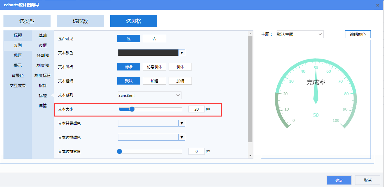 标题:设置标题文本大小为20.