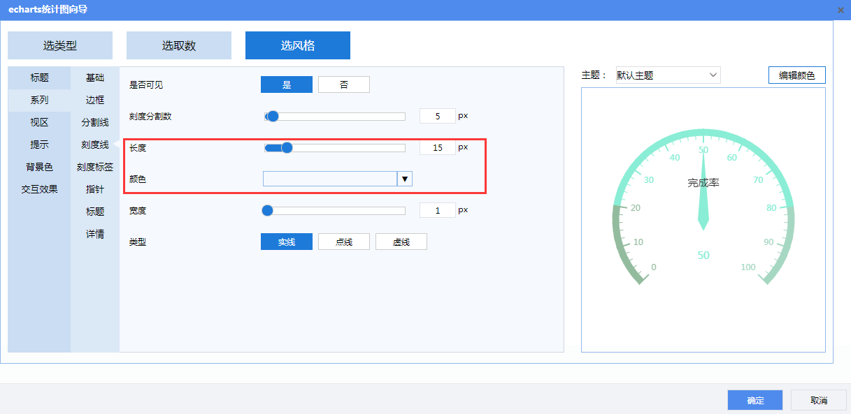 刻度线:设置刻度线长度为15,颜色为无色。