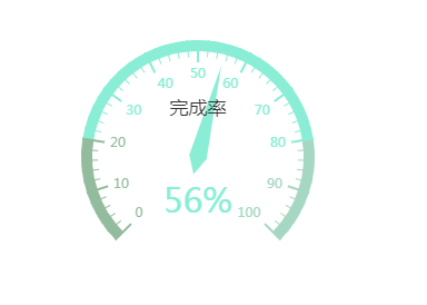 仪表盘像一个钟表的表盘,它有刻度和指针,其中刻度表示度量,指针表示维度,指针角度表示数值,指针指向当前数值。如下图所示: