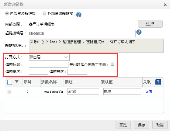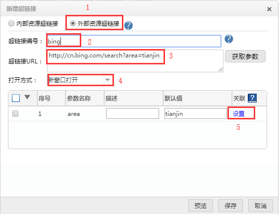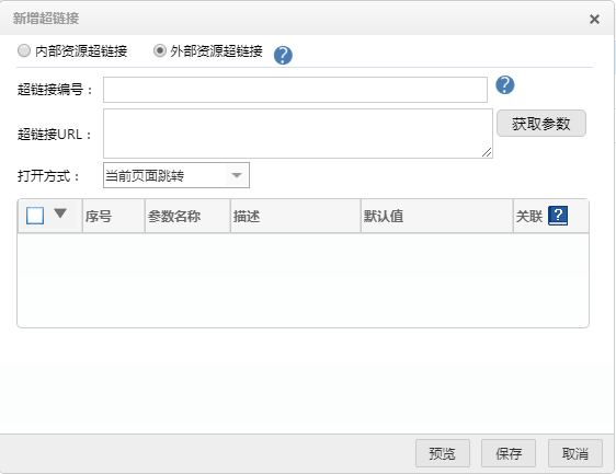 以带参数的外部资源超链接为例,详细介绍一下带参数的外部资源超链接的新建方法: