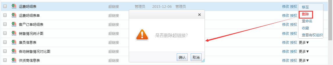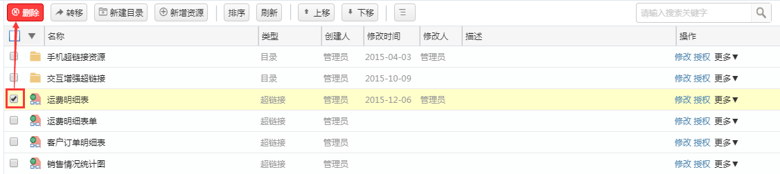点击超链接资源名称后的删除,即可删除超链接资源。