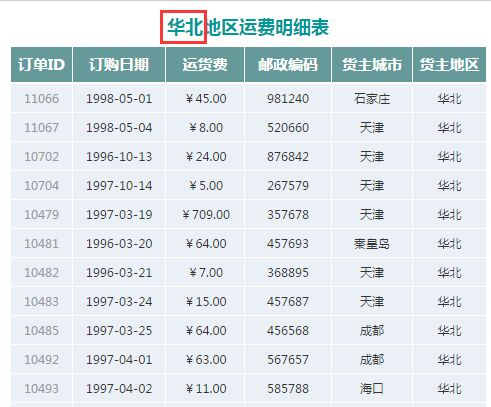 点击带有超链接的单元格数据可以看到,当点击不同的地区,会自动跳转到相应地区的明细表中。