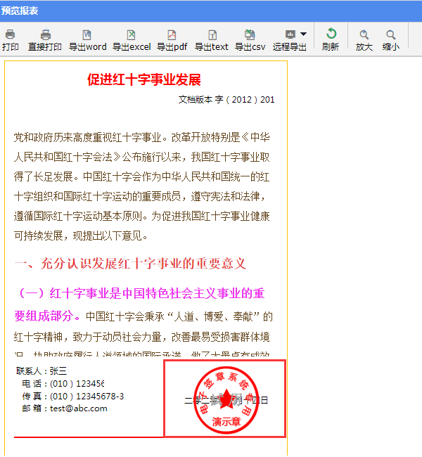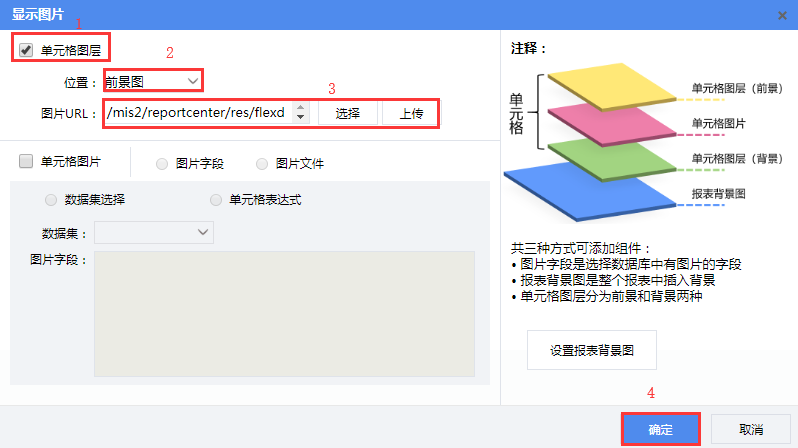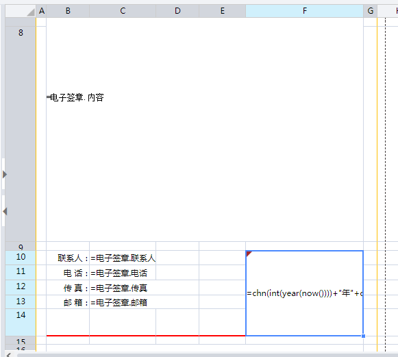 应用场景示例第一步 制作普通报表第二步 设置电子签章第三步 保存预览应用场景电子签章为透明背景的图片,很多时候我们希望在报表中嵌入电子签章,实现完备的电子商务办公。如下图: 示例第一步 制作普通报表先按照制作普通报表的方法,制作一张样式如下图所示的自由格式普通报表。 第二步 设置电子签章选中F10单元格,打开【编辑】--【单元格图片】, 勾选“单元格图层”,选择“前景图”,选择图片后,点击【确定】,如下图: 第三步 保存预览点击预览按钮,保存并预览报表。 预览界面: