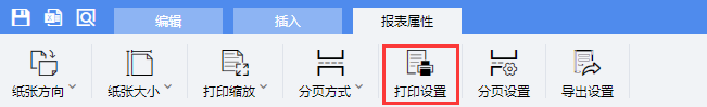 打开【报表属性】--【打印设置】页面。