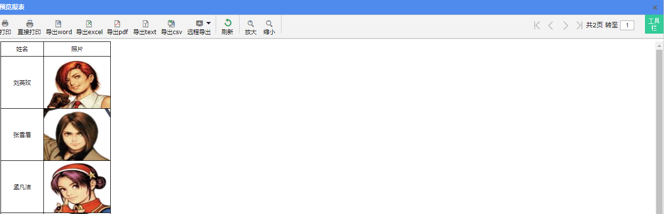若图片存放在二进制字段中,在预览报表时显示的是文件内容,而实际应用中我们需要显示为图片,如下图所示: