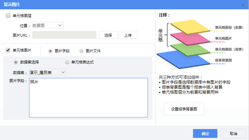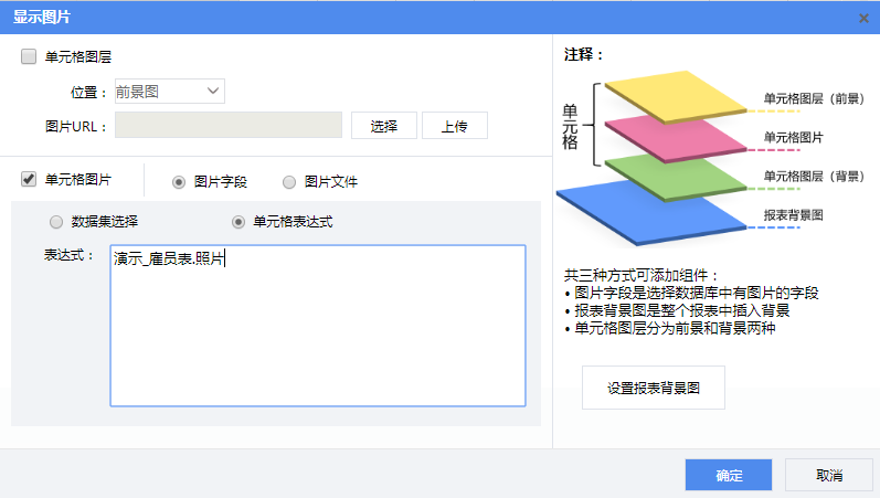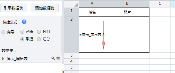 方式二:选中“单元格图片”下的单元格表达式,并设置表达式为“演示 _ 雇员表.照片”,如下图: