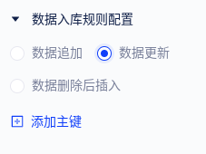 目前支持3种入库规则:数据追加、数据更新和数据删除后插入。