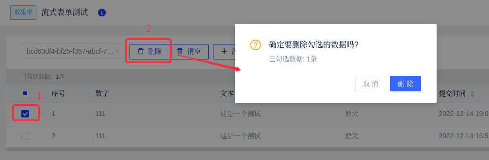 • 删除:在每条数据前有复选框,点击某条数据前面复选框可以对该条数据进行删除。如果选择表头区前的复选框可以全选数据