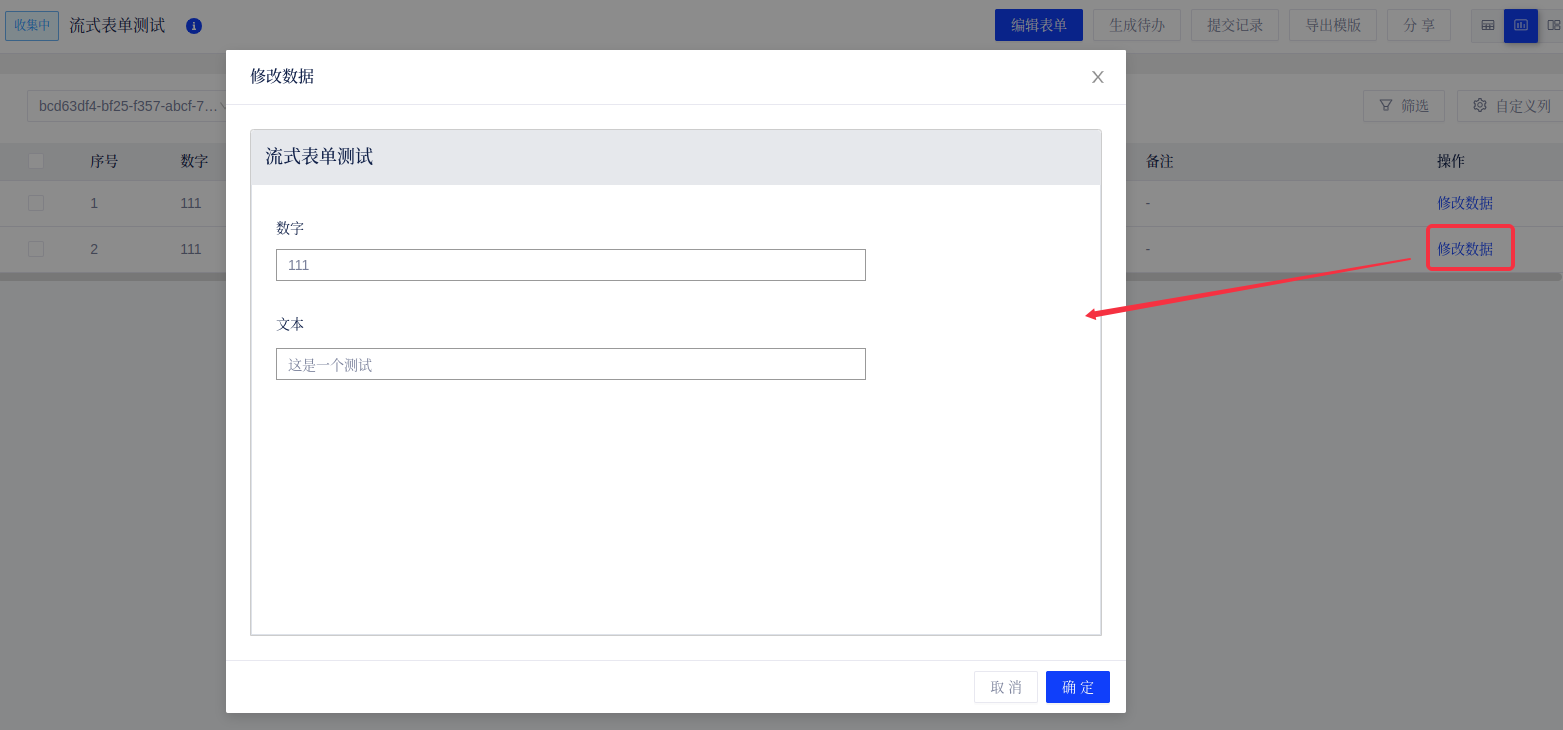 • 修改数据:对于已提交/审批的表单数据,支持修改