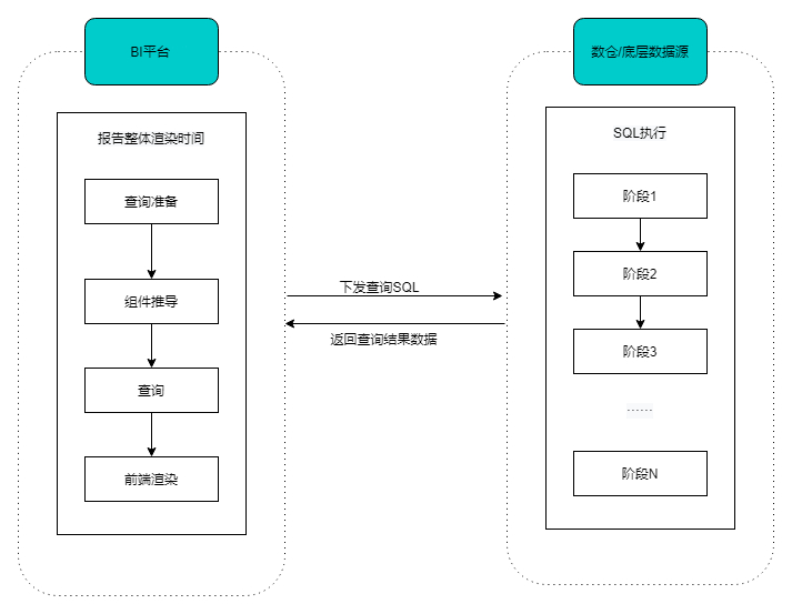 - 首先是查询准备和组件推导时间,即BI平台需要知道查询什么样的数据、生成什么样的图表;