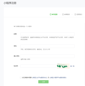 注册链接:https://mp.weixin.qq.com/wxopen/waregister?action=step1