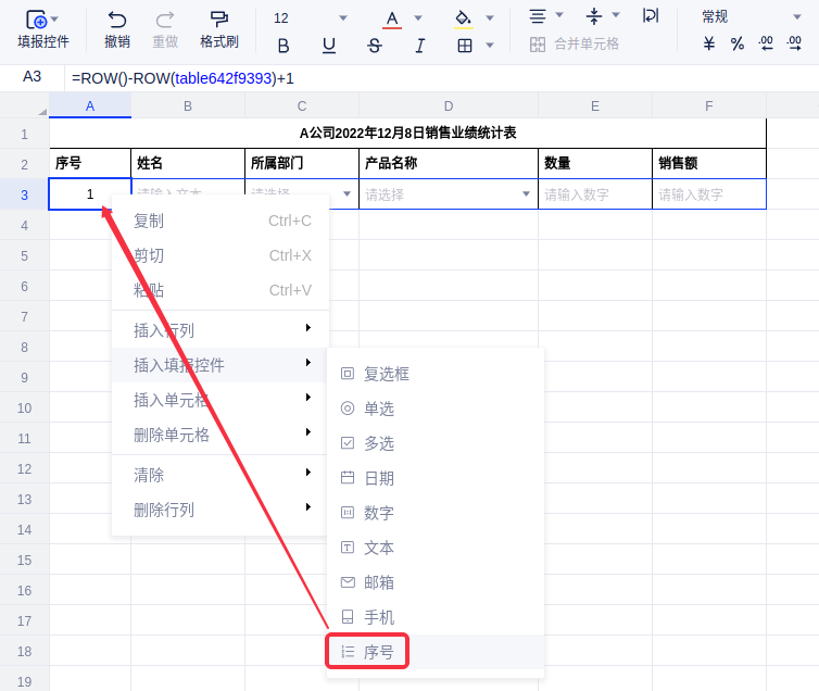 (2)向动态表区域添加填报控件,动态表支持制式表单的所有控件,同时支持序号控件