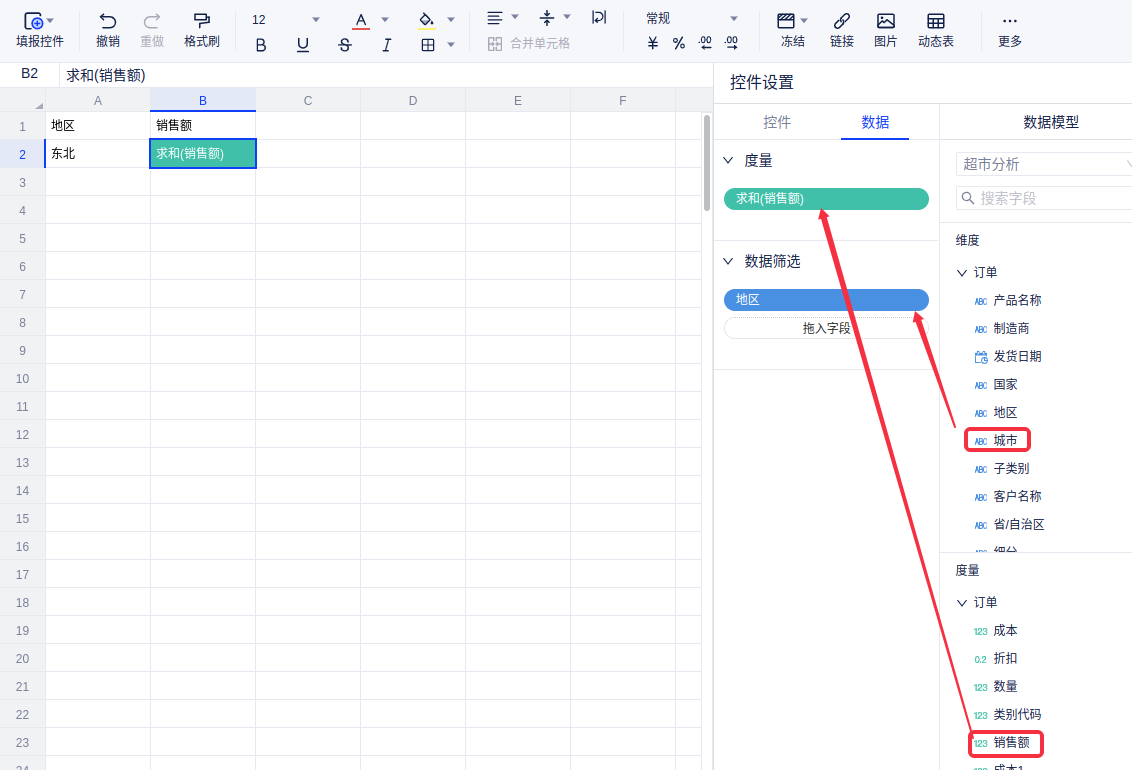 数字控件支持引入数据模型,操作方式与报告的数据模型引入方式一致。