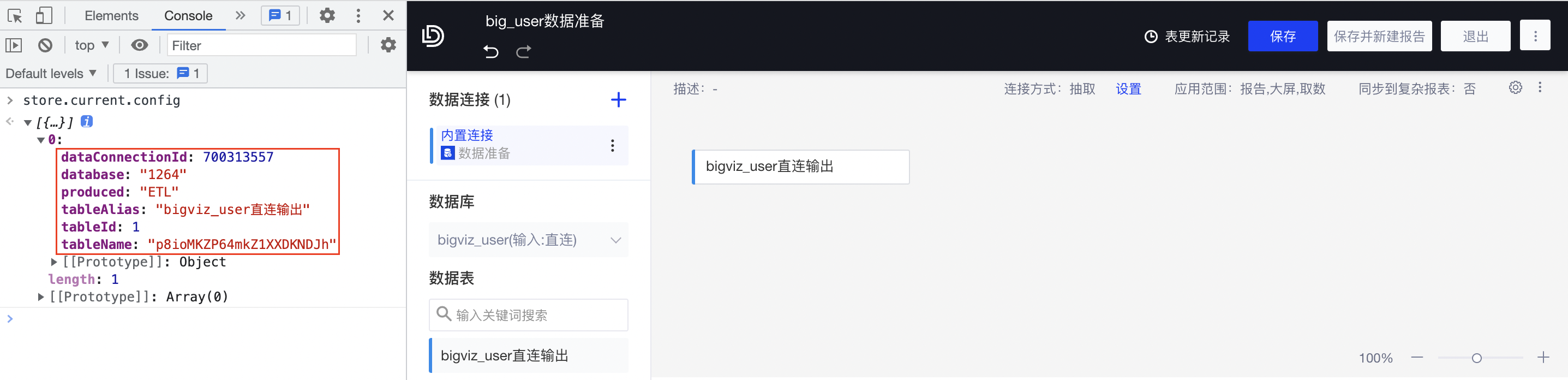 内置连接: 数据准备的输出表, 可以在浏览器控制台查看: store.current.config (其他类型的表也可以用这种方法)