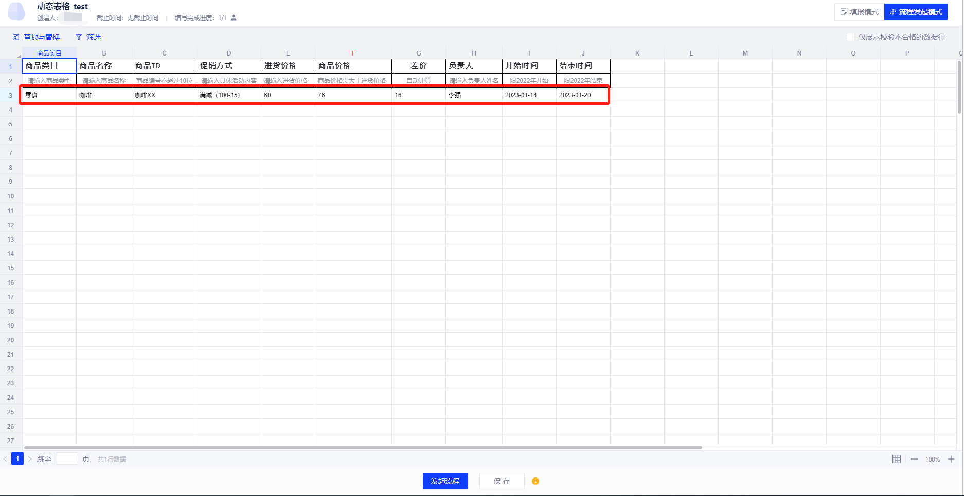 发起人点击发起流程,即可看到填报人填写的信息