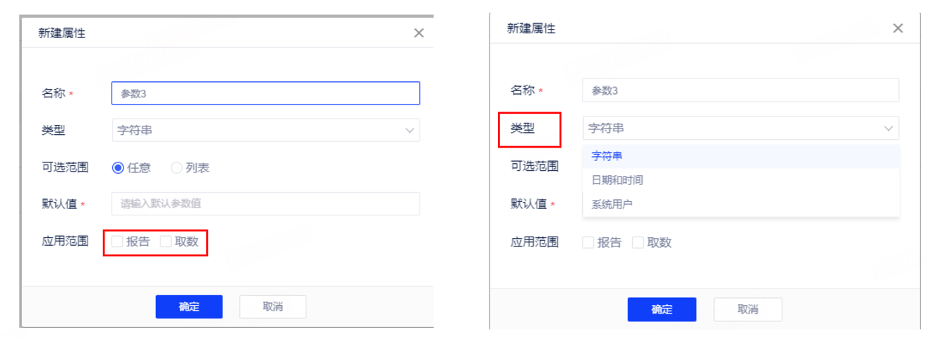 (2)扩展属性类型可选,字符串、日期和时间、系统用户。扩展属性应用范围支持多选,报告、取数。