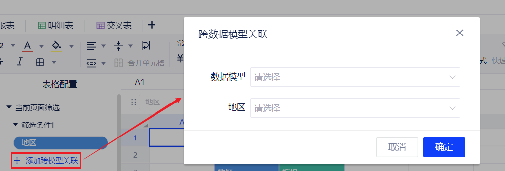 1. 概述2. 快速入门1. 概述在当前页面或所有页面范围内进行筛选。 2. 快速入门(1) 产品入口 顶部工具栏 --> 表格配置 --> “当前页面筛选”/“所有页面筛选”。 (2) 筛选配置 将需要筛选的维度或度量拖入“当前页面筛选”或“所有页面筛选”位置,在弹出窗口完成筛选配置,具体筛选方式见数据筛选。 (3) 跨模型关联 支持将当前筛选字段关联到其他模型的相应字段