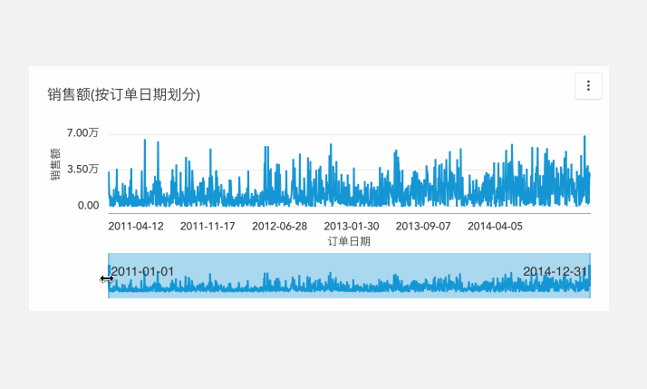 1. 概述2. 设置1. 概述查看图表数据时,您可以通过拖动轴选择想要查看的数据区域,以查看详细的数据。 支持图表:柱状图、区域图、折线图、直方图、组合图 2. 设置选中图表,选择右侧配置区的样式tab,点击选中缩略轴,即完成缩略轴的设置。缩略轴拖动时,会显示两端的值。 缩略轴拖动时,会显示两端的值。