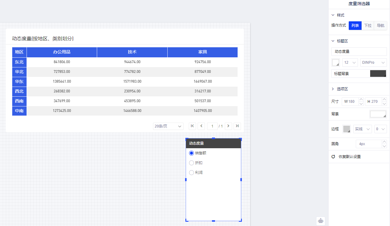 (4)选中度量筛选器,可对样式、标题等项目进行调整,这里设置为导航样式;