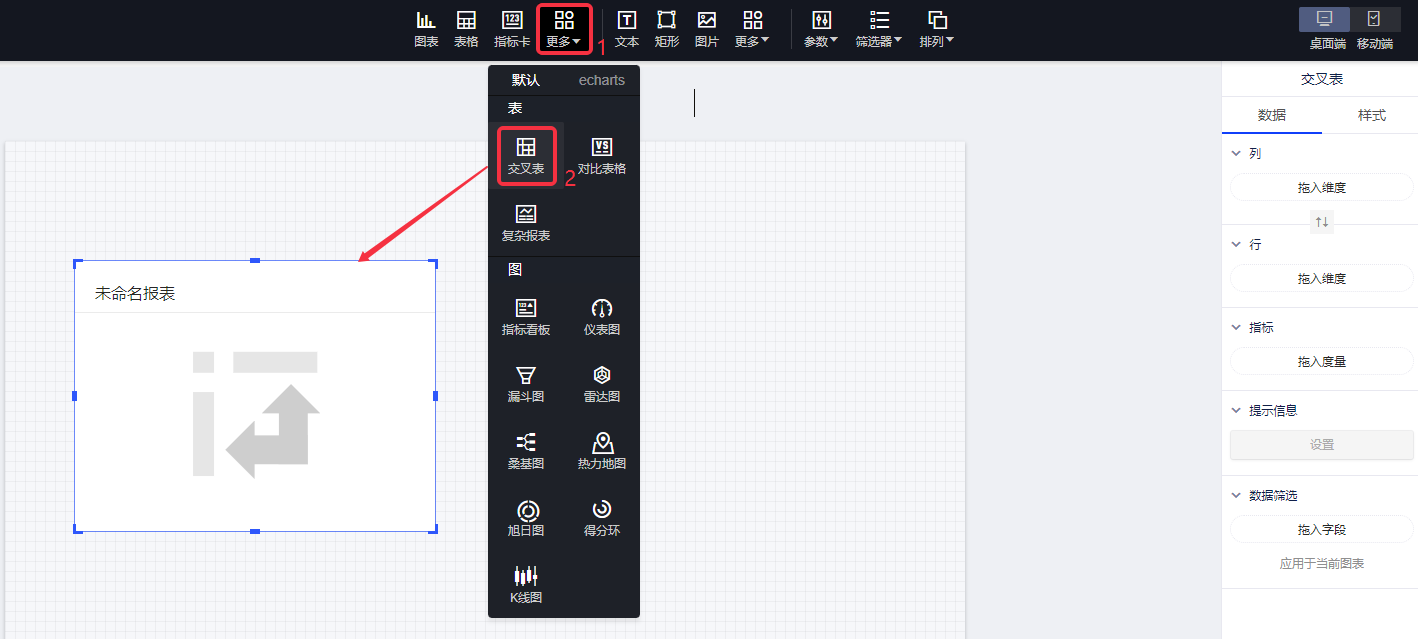 (1)选择“交叉表”控件,在画布上画出“交叉表”;