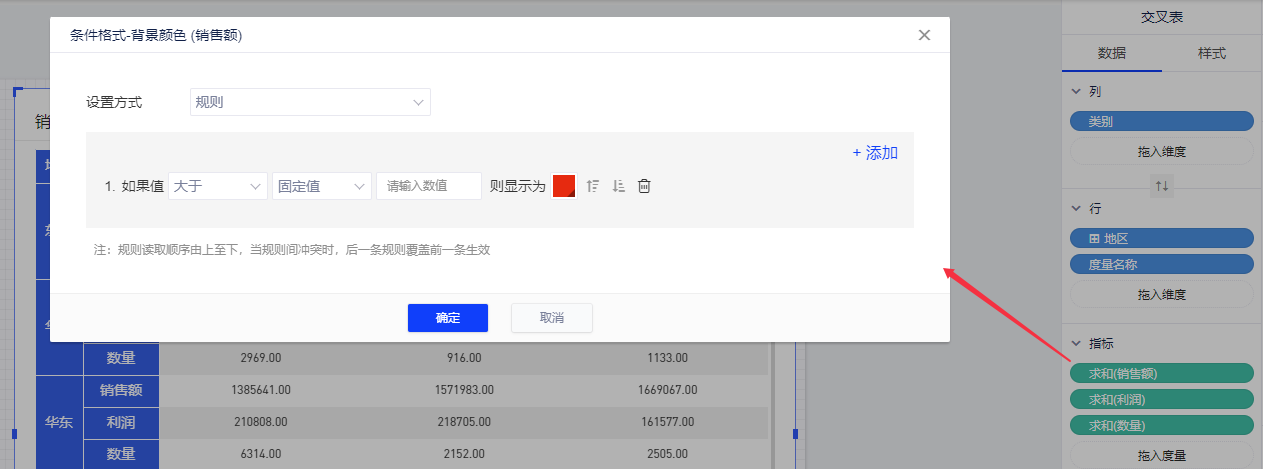 (3)与表格类似,您也以可对交叉表的指标设置条件格式并且支持带条件格式导出;