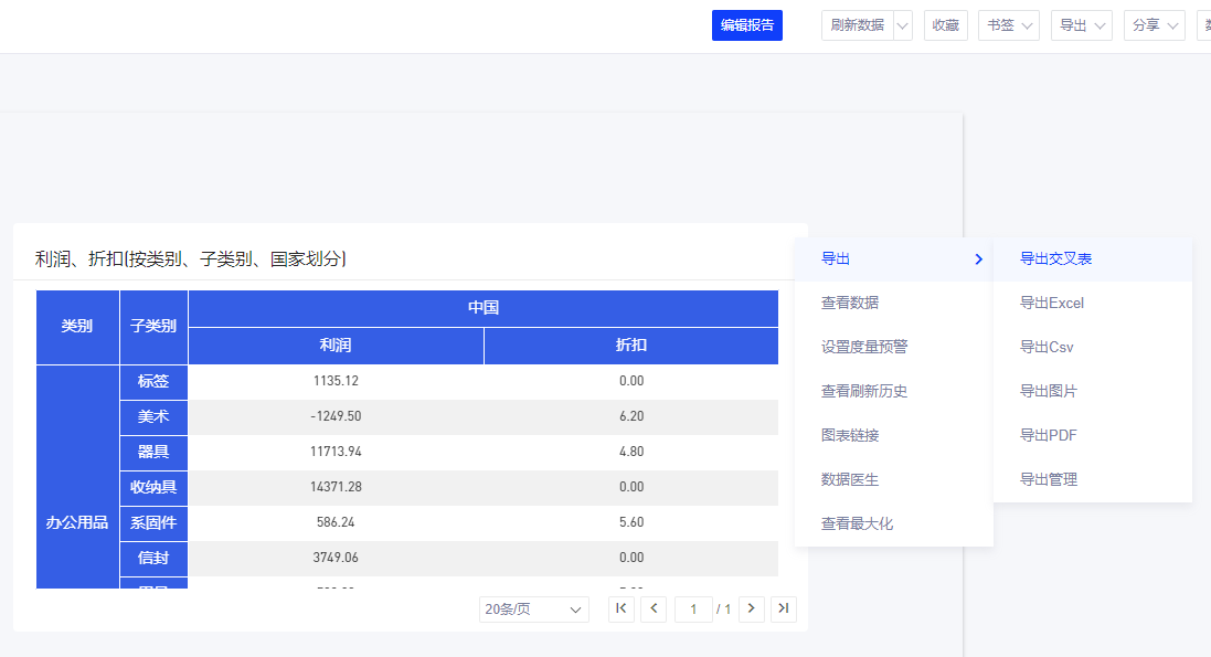 设置后,导出交叉表数据量若超限则会有上限提示。