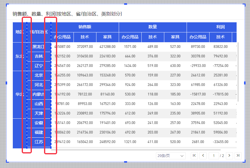 (1)在交叉表编辑态下,双击交叉表可以进行拖拉调整列宽;