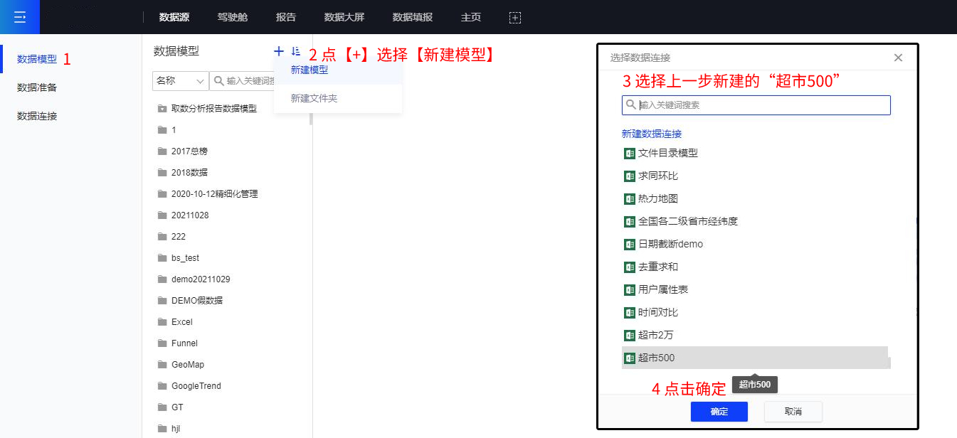 (2) 添加和选择数据模型:选择需要用到的数据模型。