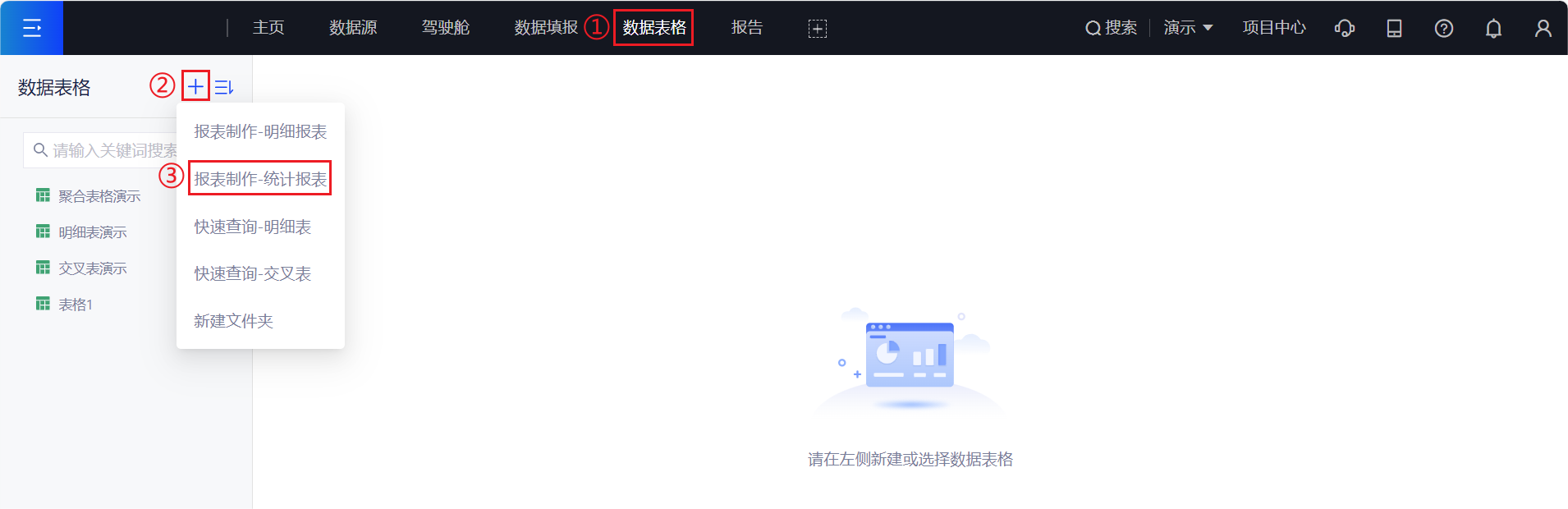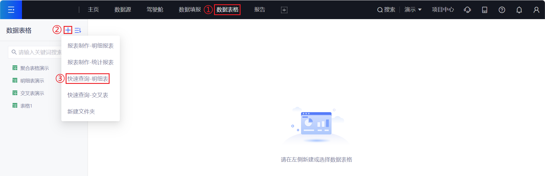 (1) 新建快速查询:进入快速查询报表制作模块。