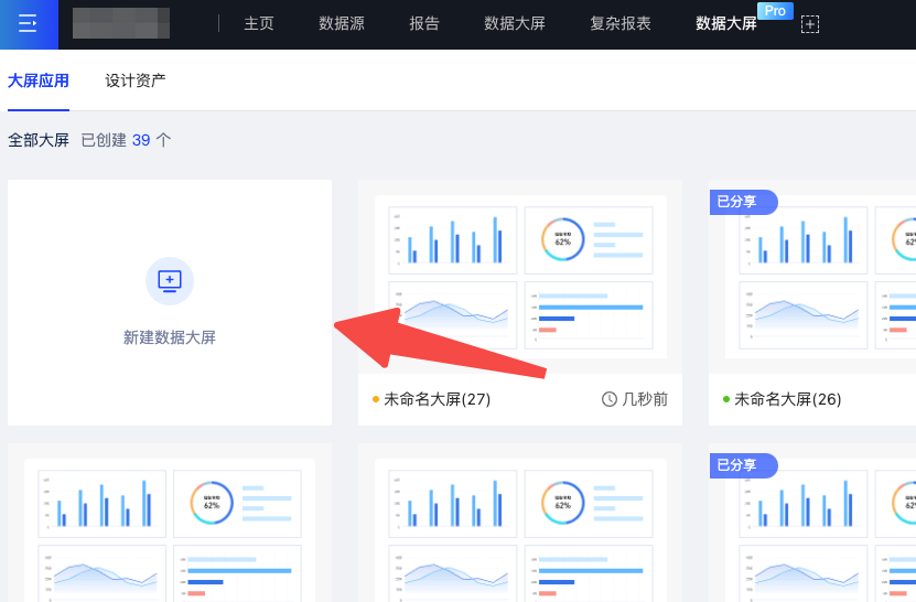 点击“新建数据大屏”以创建一个新大屏。
