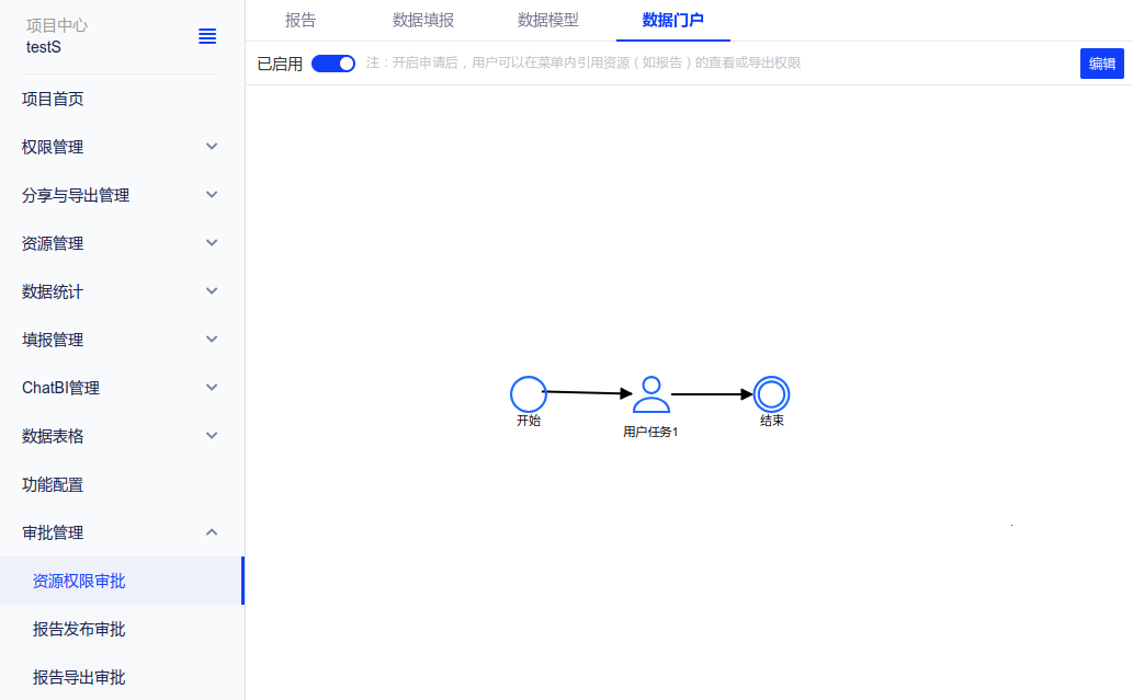 备注:项目管理员可以编辑项目内所有门户,其他成员仅可以编辑自己创建的数据门户